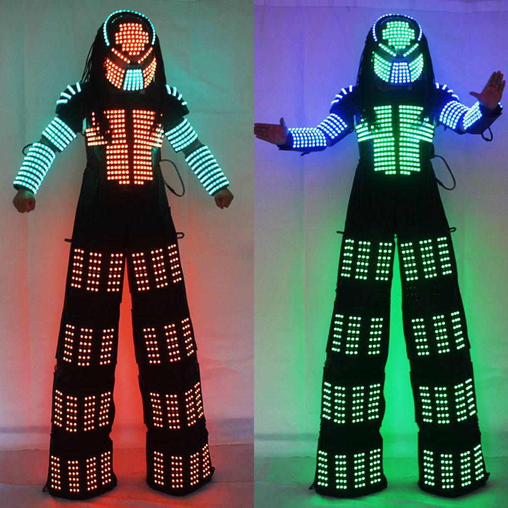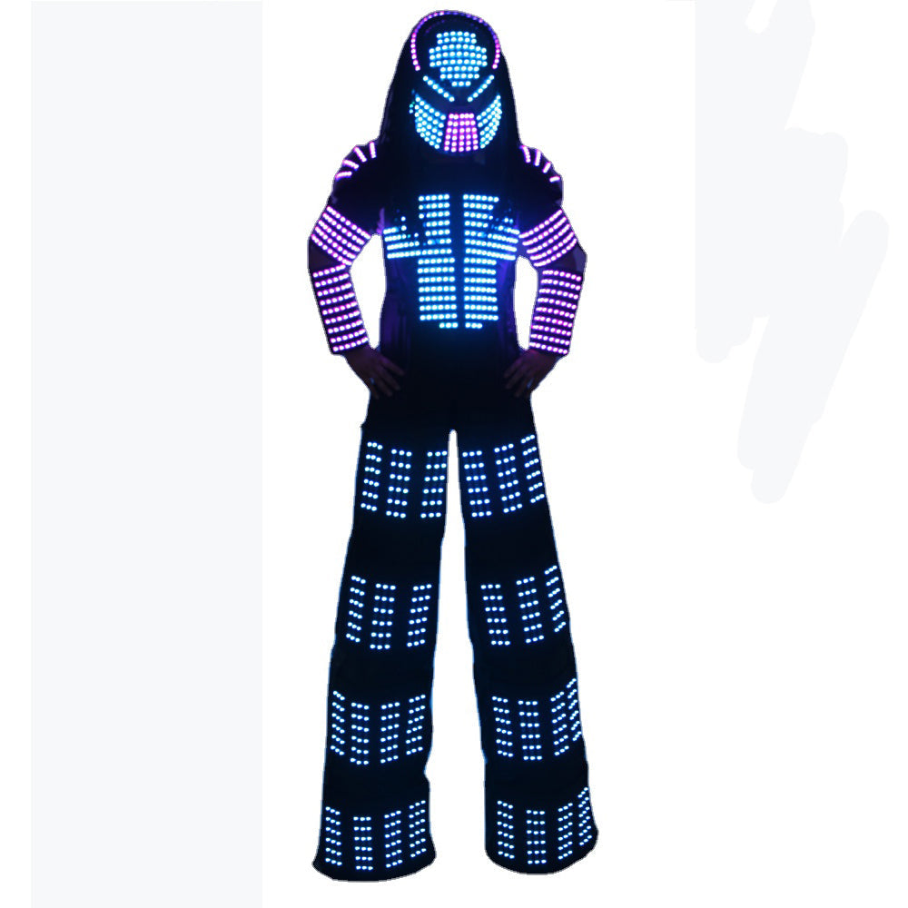David Guetta LED Robot Suit Clothes Stilts Walker Costume Helmet Laser Gloves CO2 Jet Mach