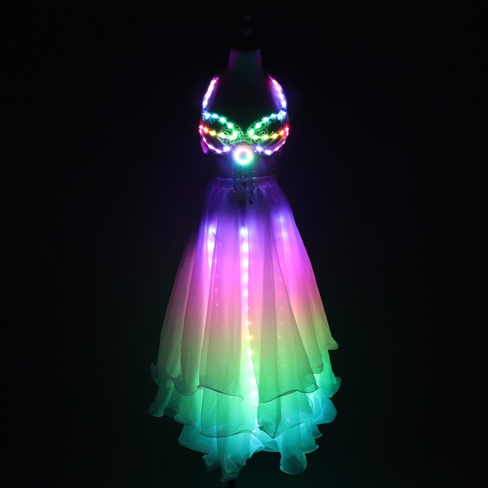 LED Color Lights Women Belly Dance Split Skirt Sexy Professional Bellydance Training Clothes Dancing Costumes