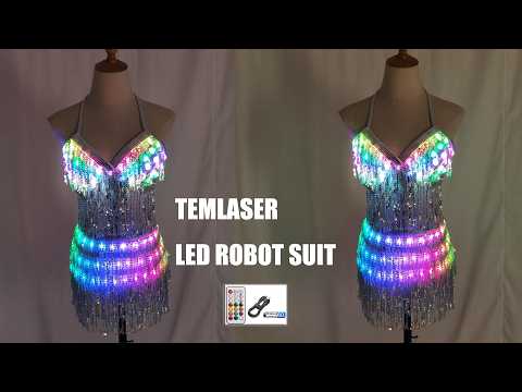 LED Glowing Sequin Tassel Dance Costume Light Up Festival Performance Outfit for Women
