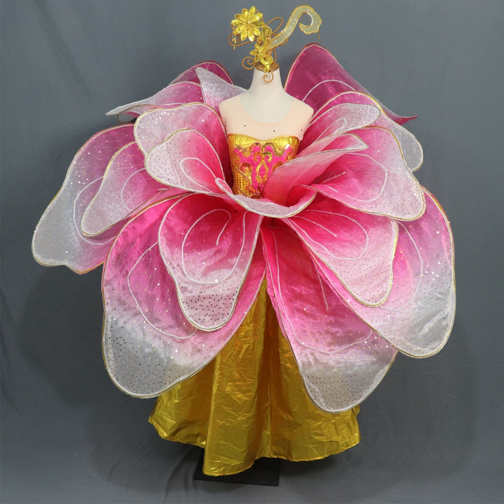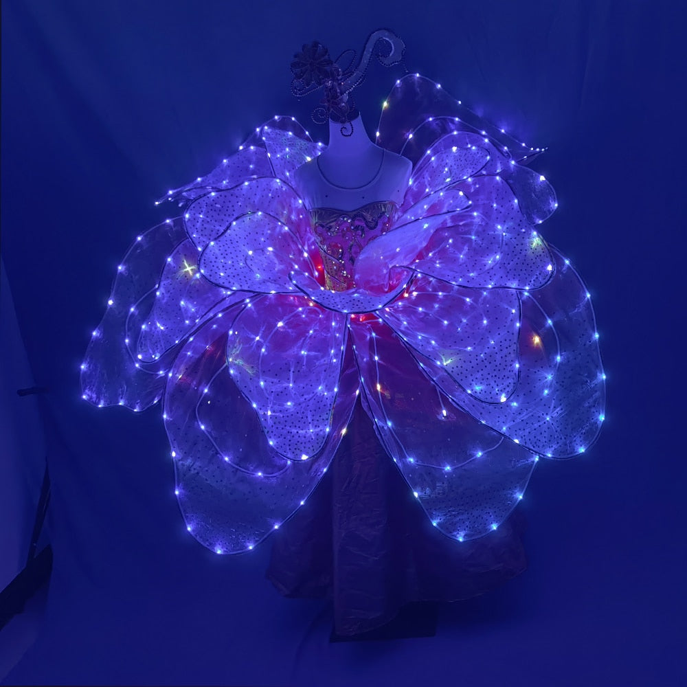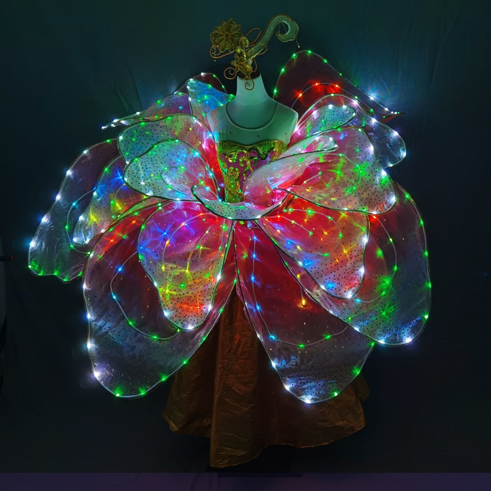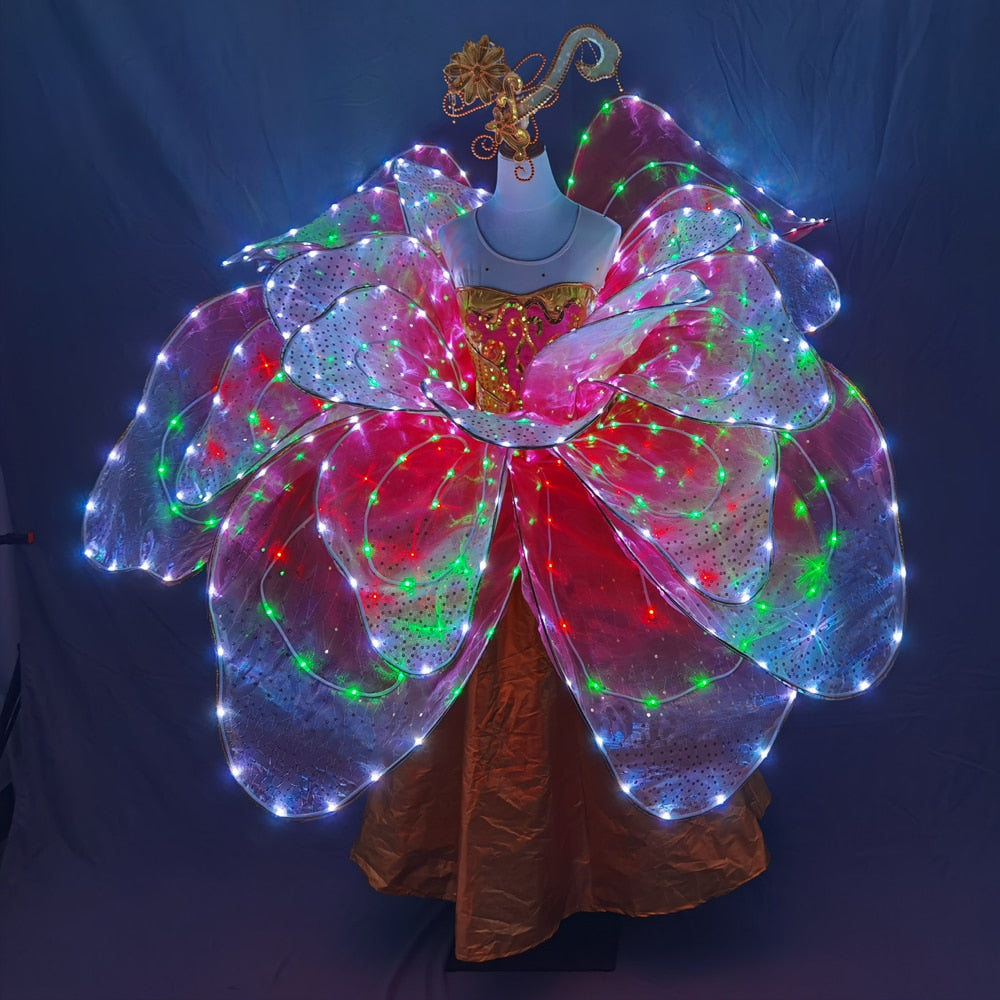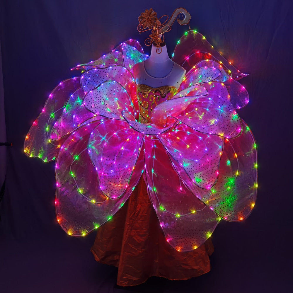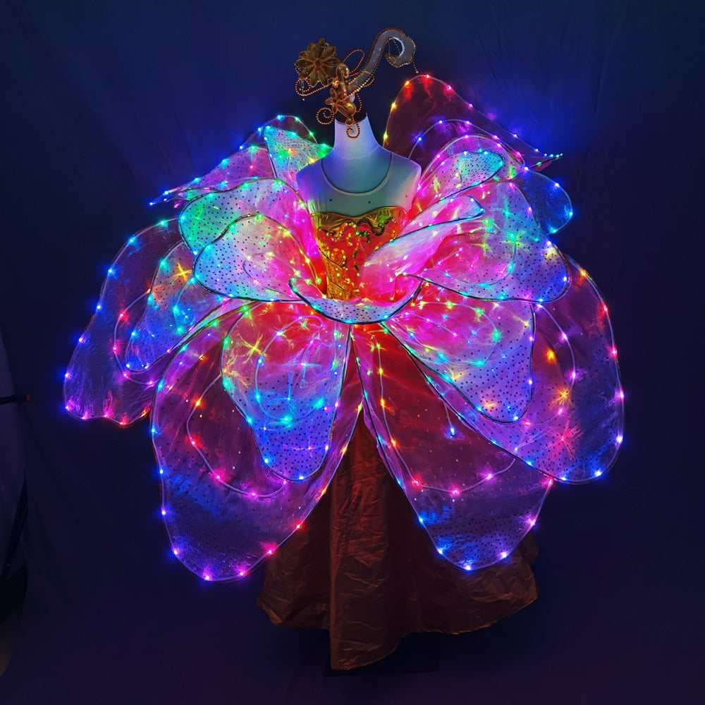 Full Color LED Petal Skirt Flower Opening Dance Big Swing Dress Modern Dance Performance Dress LED Robot Suit Blossom Long Dress