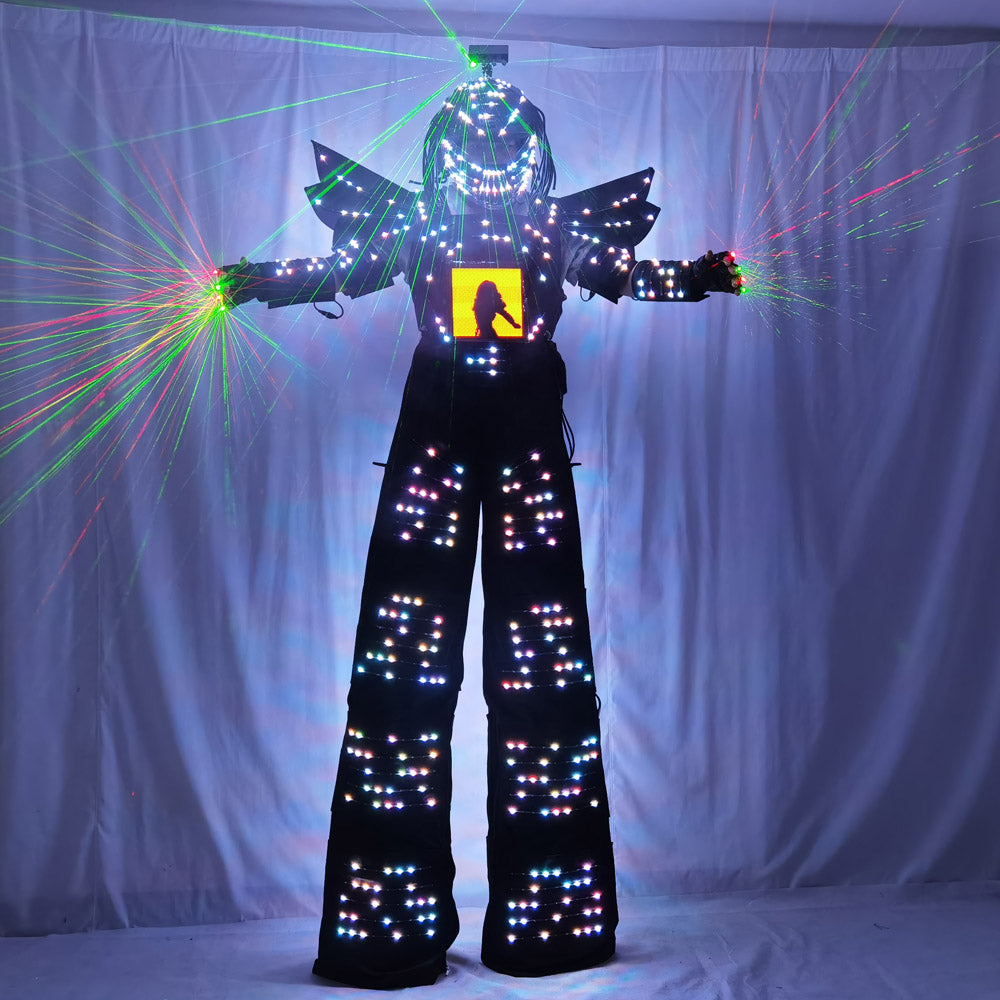 Customizable Full Color Pixel LED Robot Costume - Stilts Walker with DIY Digital Screen & Laser Gloves for Epic Performances
