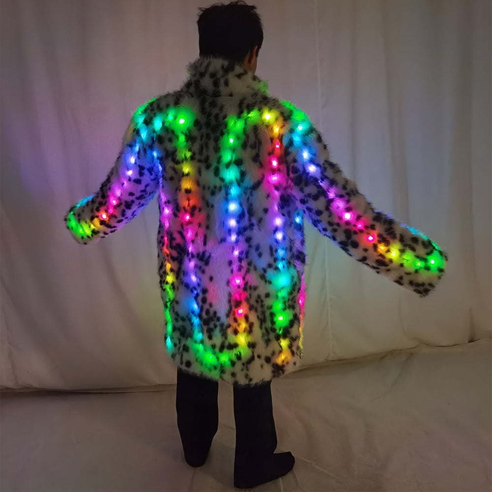 Faux Fur Coat Men Hooded Outerwear Comfortable Thick Winter Warm Long Jacket LED Stage Dance Party Cosplay Costume Overcoat