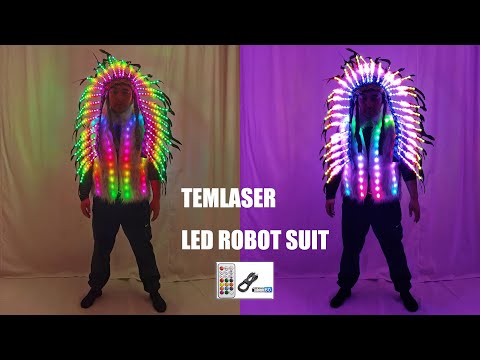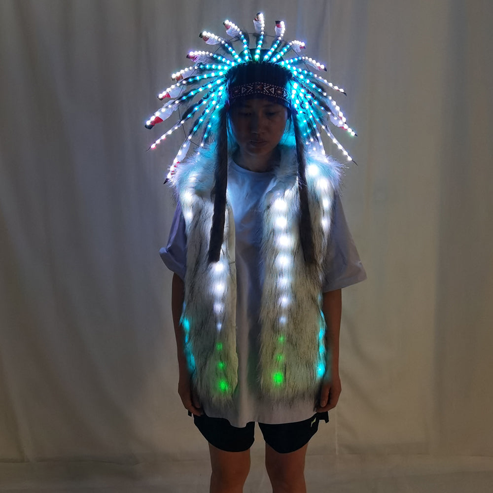 Full Color LED Light Up Faux Fur Vest Jacket with Indian Headdress & Hula Skirt