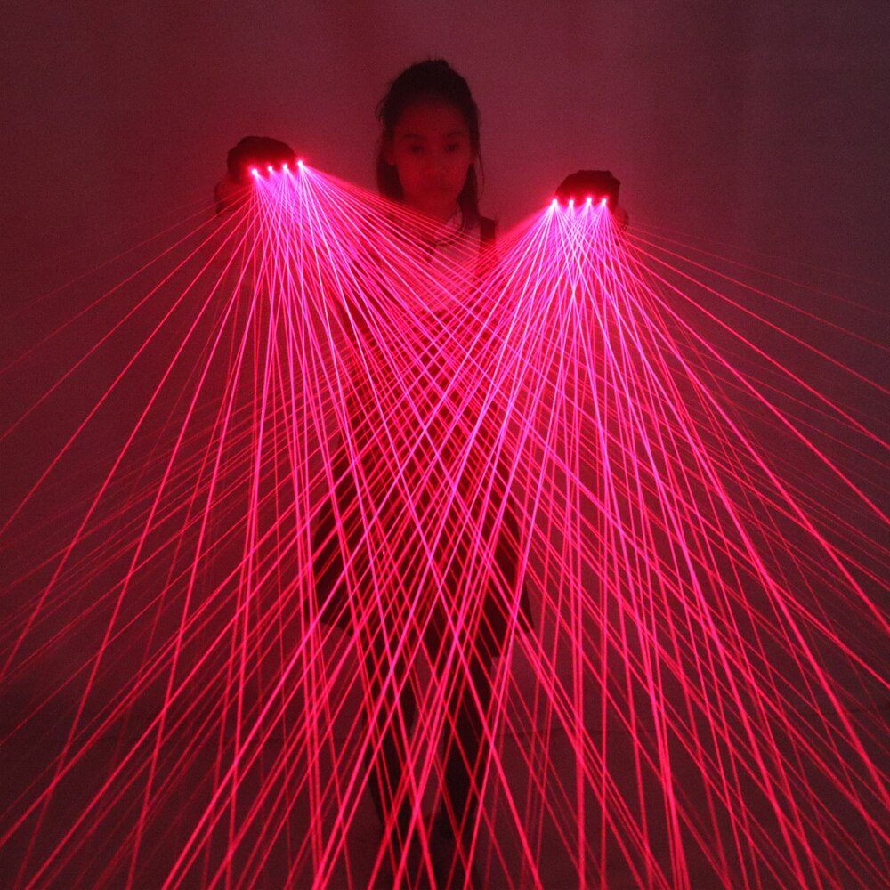 2 In 1 Multi-line Red Laser Gloves with 4pcs Laser Disco LED Laser Gloves for LED Luminous Laser Show