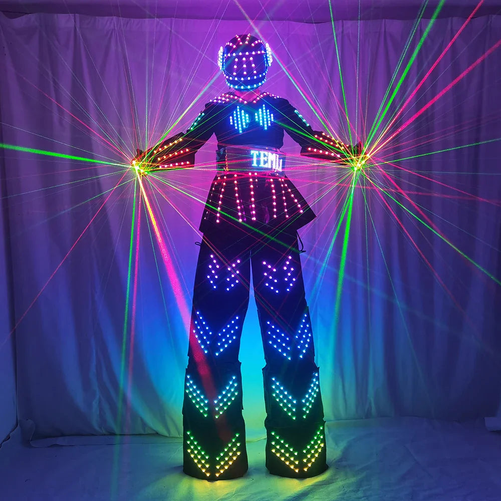 Colorful LED Luminous Costume With Helmet LED Clothing Light Stilt Robot Suit Kryoman David Guetta Robot Dance Wear