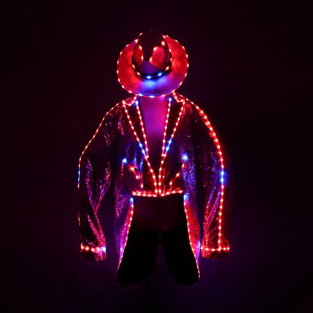 Includes: LED suits, LED pants, hats, remote control, battery box.