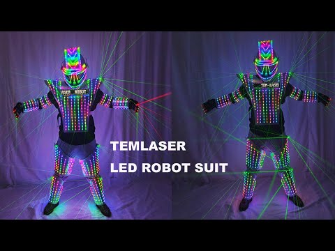 Full Color LED Robot Suit with Green Laser Jacket - Illuminated Costume for DJ Bar Stage & Model Show Performances