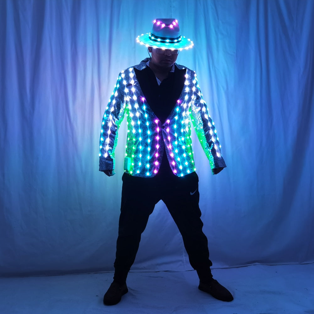 Full Color LED Sequins Fashion Lighting Fashion Senior Host Dress Dance Best Man Banquet Slim Suit Jacket
