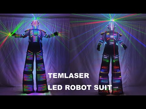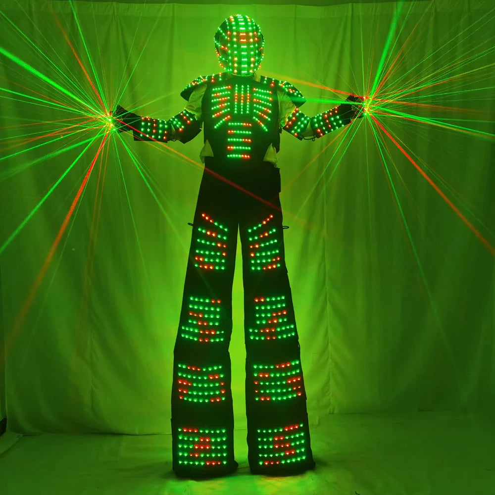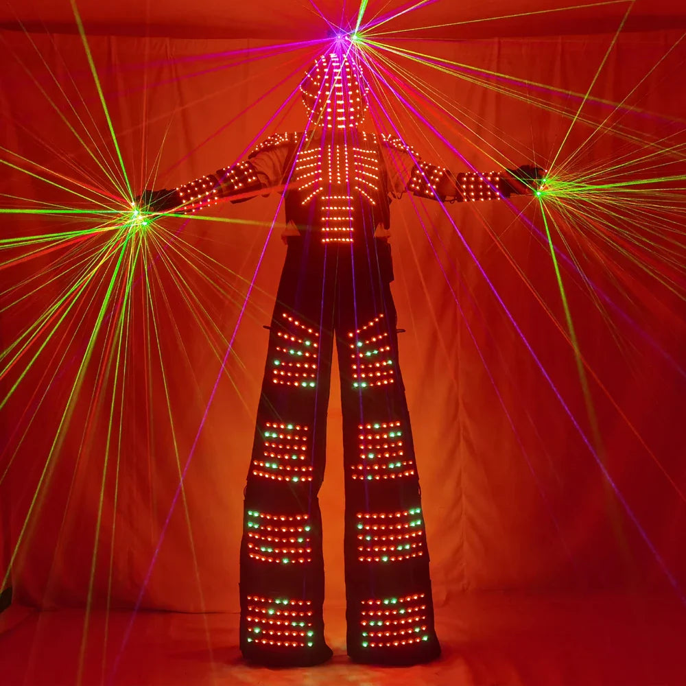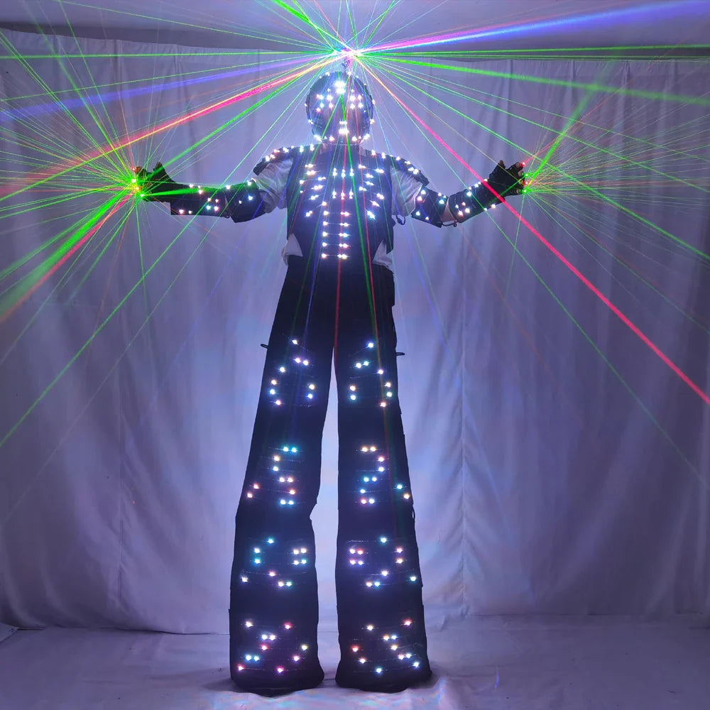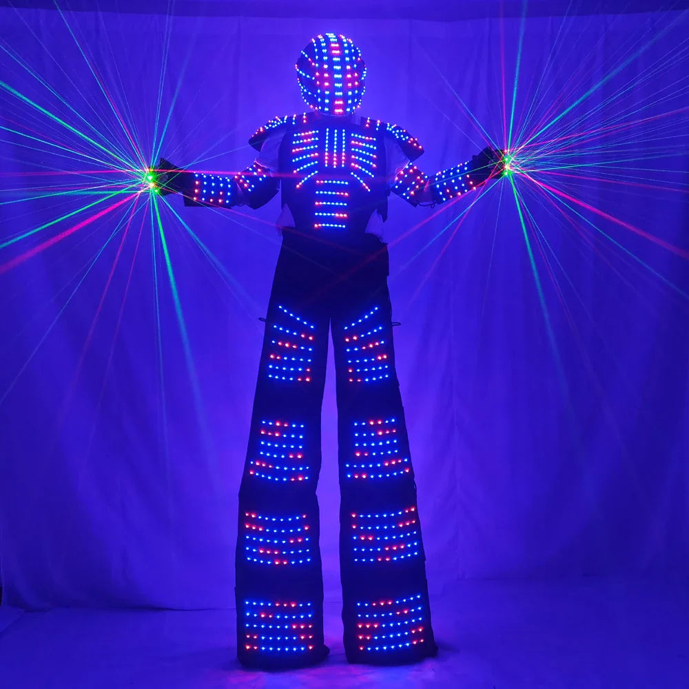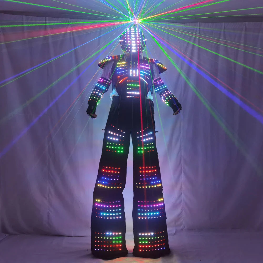Full Color Pixel LED Robot Costume David Guetta LED Robot Suit Laser Robot Jacket Ranger Stilts Clothes Luminous Costumes