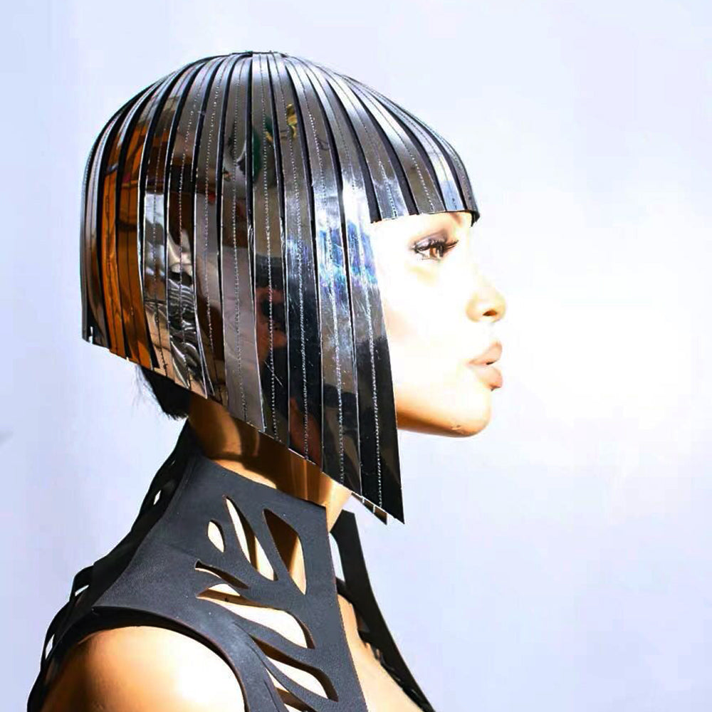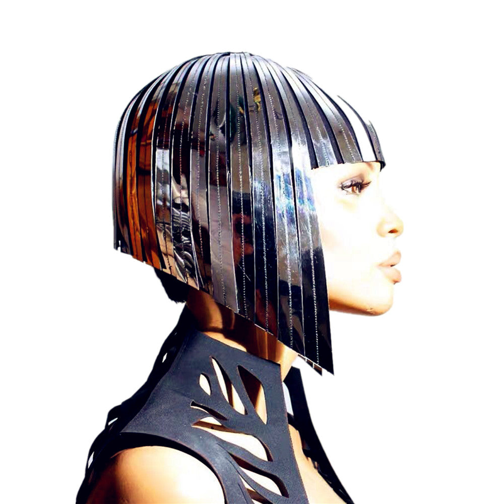 Future Space Female Wig Headgear Soldier's Cool Reflective Wig Bar GOGO Dance Wear Wave head Mirror Wig Customize Colors