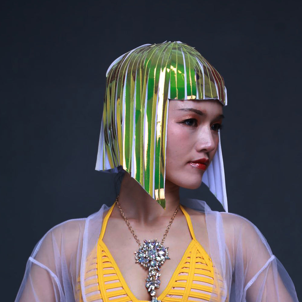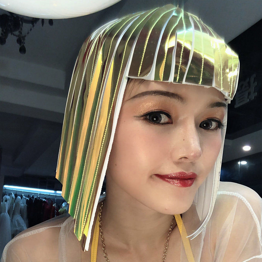 Future Space Female Wig Headgear Soldier's Cool Reflective Wig Bar GOGO Dance Wear Wavehead Mirror Wig Customize Colors