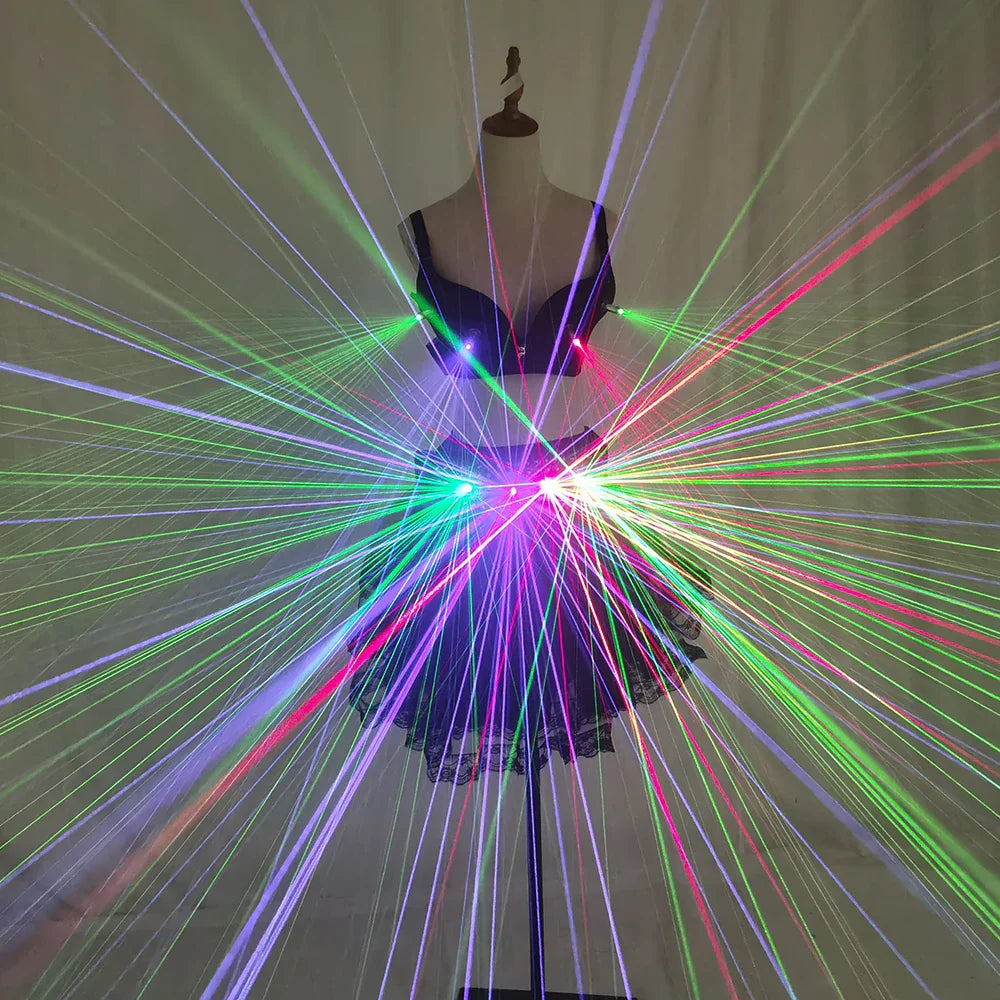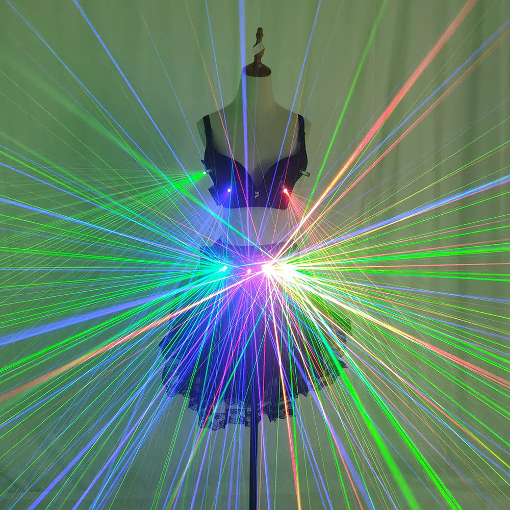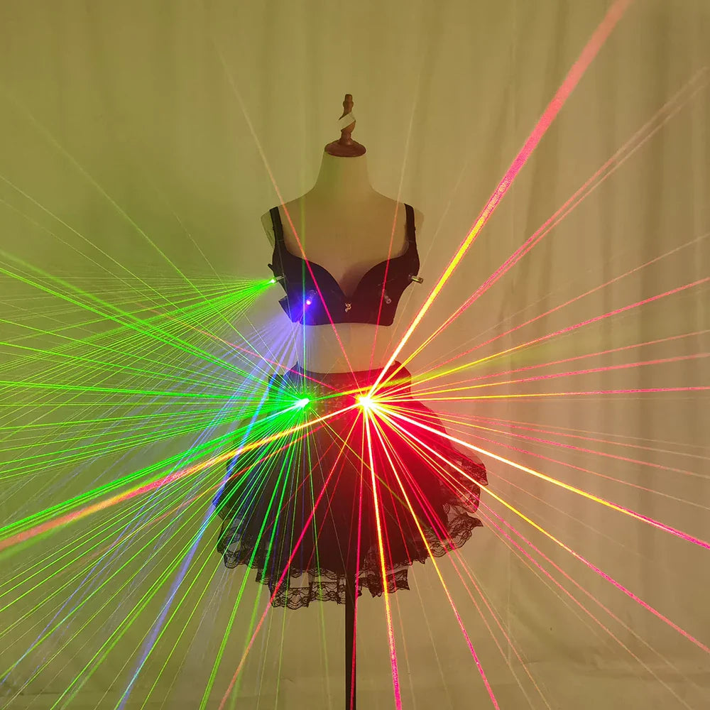Laser Female Stage Costume Red Green Blue Laser Belt Girdler Bra for Night Club GOGO Dancer Paradie Performance Dress