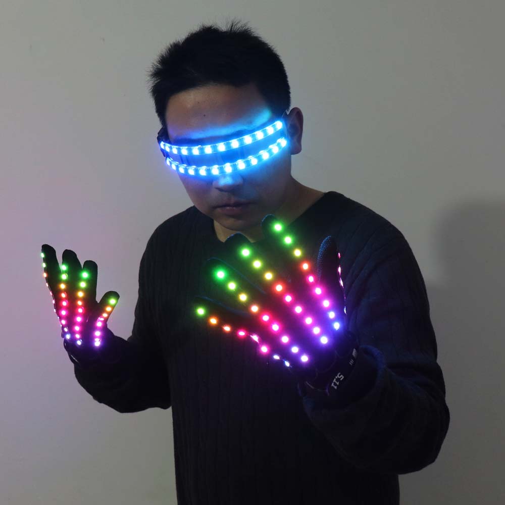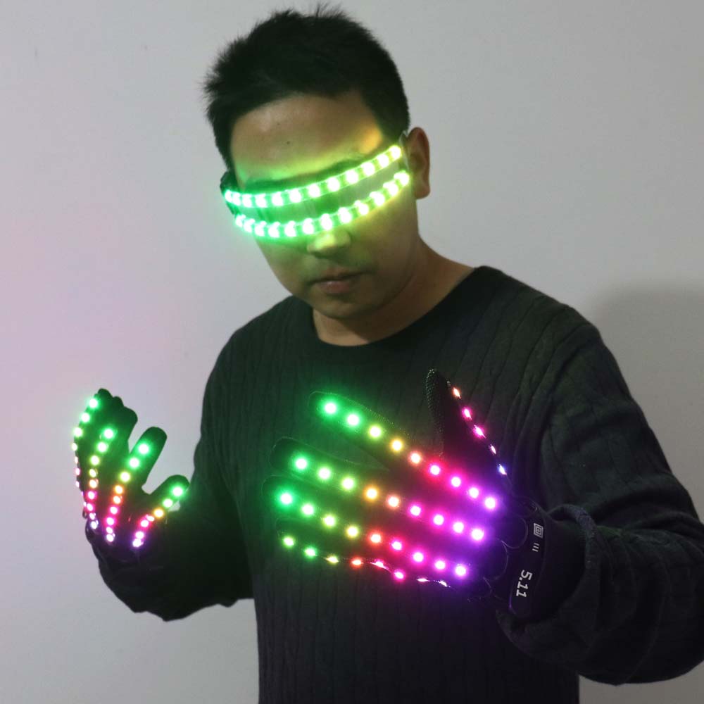 LED Glow Gloves Rave Flashing Finger Lighting Glasses Light Up Glasses Rave Costume Party Decor DJ SunGlasses Halloween Decorati
