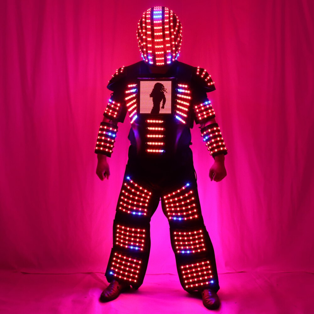 LED Robot Costume Luminous Suit Men Gogo Singer Guest Dancer Costume Suit Hero Light Armor For Stage Party Wear