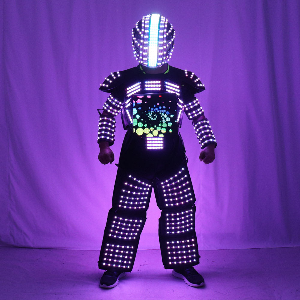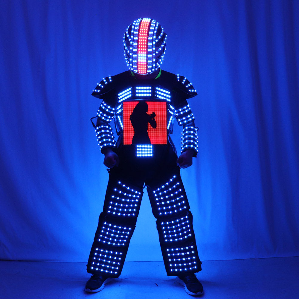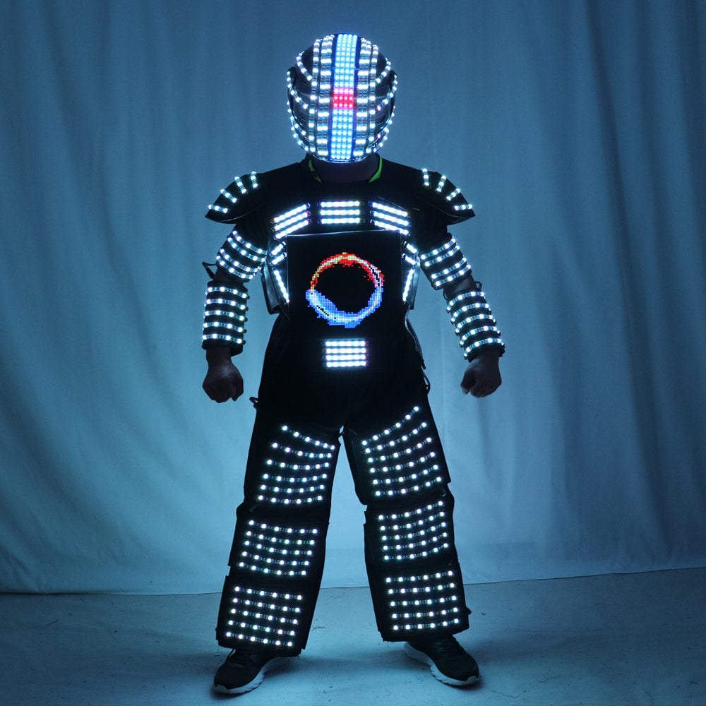 LED Robot Suit Stage Dance Costume Tron RGB Light Up Stage Suit Outfit Jacket Coat with Full-color Smart Display