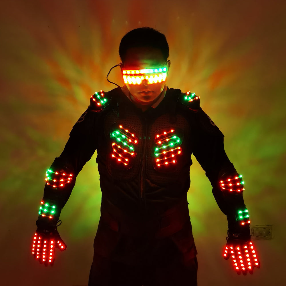 RGB Colorful Light Armor Outfits Glowing Clothe Show Dress Bar DJ MC Performance Robot Men Suit Led Costumes Ballroom Wears