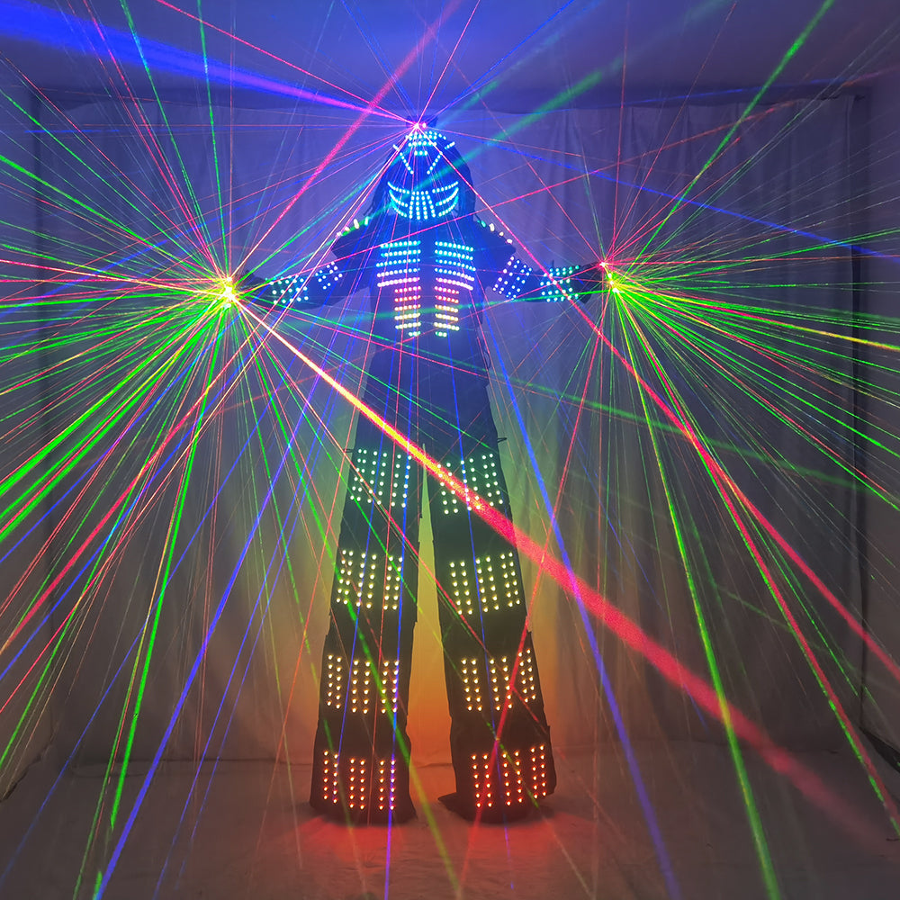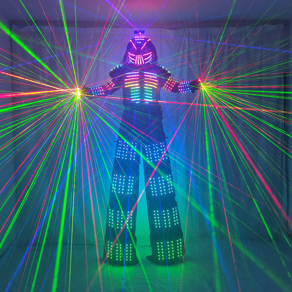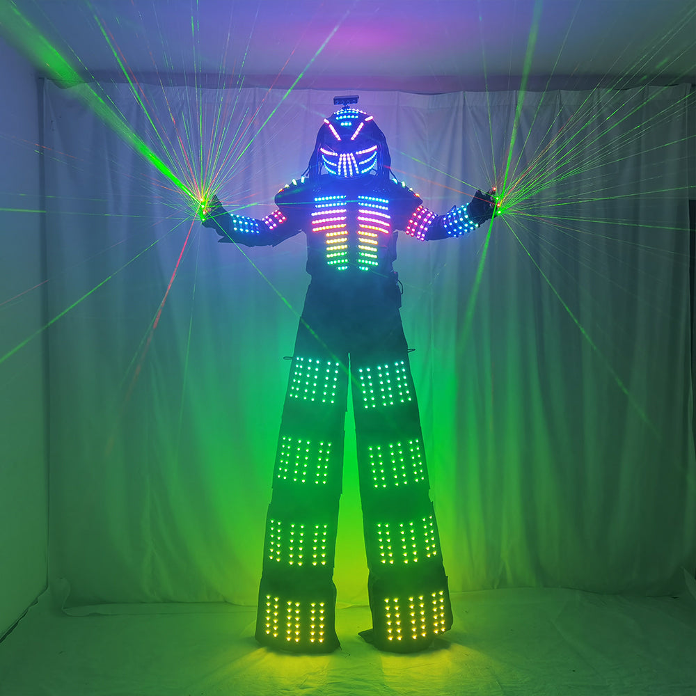 Traje LED Robot Costume Clothes Stilt Walking Luminous Suit Jacket with Laser Gloves Helmet for Bar DJ Music Festivals