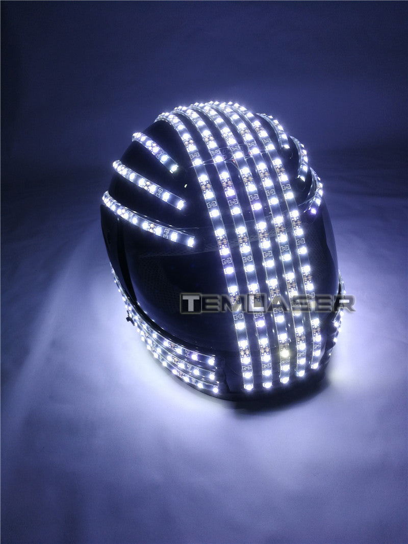 White Strobe LED Helmet LED Luminous Costumes Wireless Remote Control Robot Laser Dance Performances