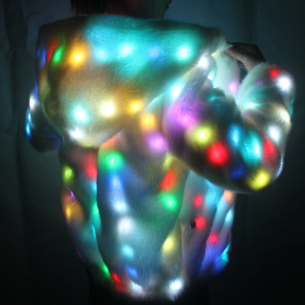 Women Faux Fur Led Light Coat Christmas Costumes Cosplay Fluffy Fur 6xl Jacket Outwear Winter Warm Festival Party Overcoat