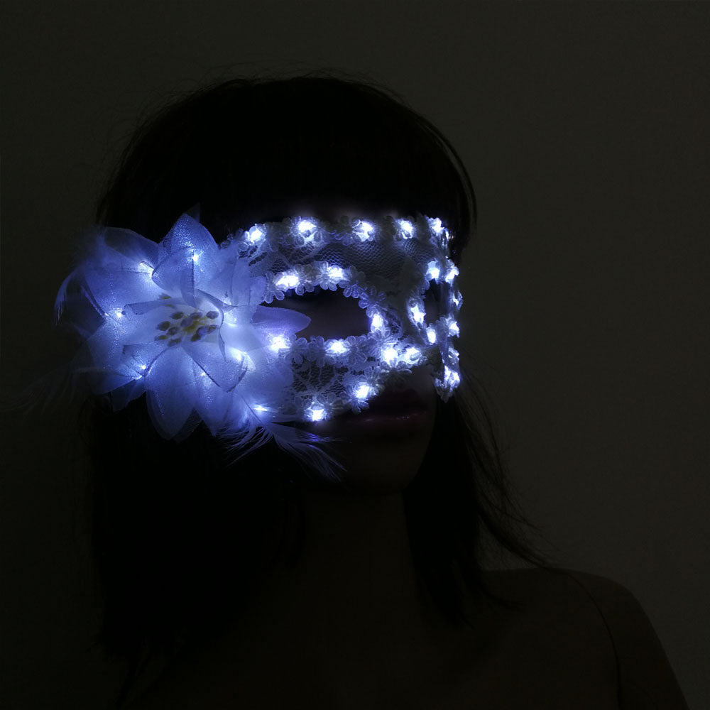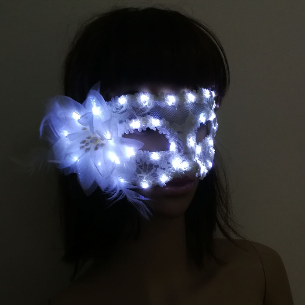 Women Girls LED Glowing Feather Fiber Mask Light Up Venetian Masks Dress Props Wedding Christmas Navidad Halloween